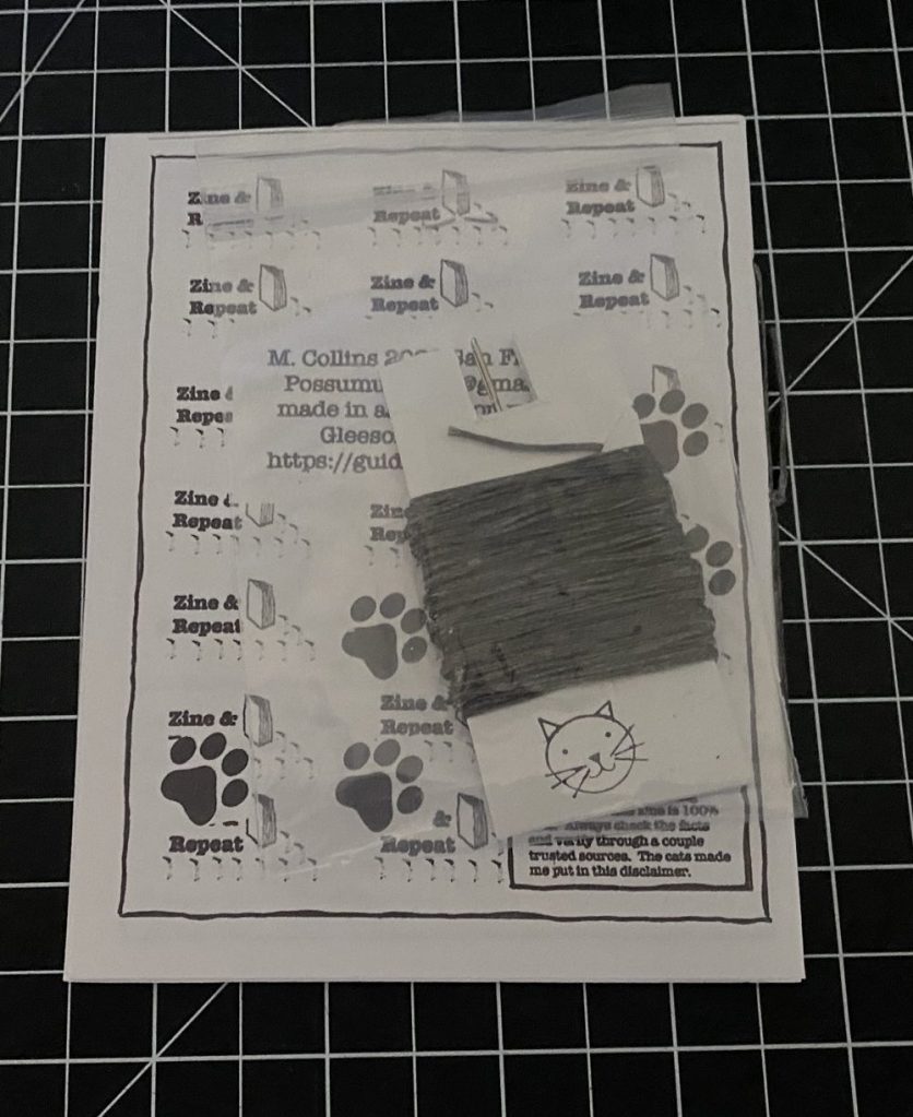 There are two story lines in this zine. A short instructional zine on how to number and stack pages to make a zine with multiple sheets of paper. Includes instructional diagrams for binding by staple or binding with thread using a pamphlet stitch. The second story line is how cats have plotted for centuries and are currently taking over the world.